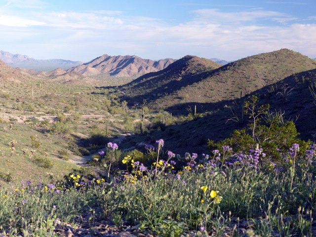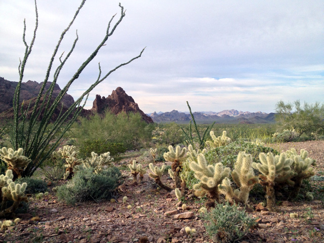 OurWild - Quartzsite >>THURSDAY I pop the hatchback of the rental vehicle and load my gear in the back: small suitcase of clothes and my laptop, plastic bin of A-V equipment, field day pack. It is dawn on a Thursday in March in Ehrenburg, Arizona—on the Colorado River and California-Arizona border. The softly increasing light, the birds awakening in song, that chill in the desert air while the sun warms one’s skin. I sometimes make like a roadrunner and turn my back full towards the sun, soaking up the warmth to loosen my bones and flesh from their overnight cold contractions Jennifer Dickson, our Southwest Communications colleague, walks out of the Best Western, across the parking lot, and drops her gear in the back of the van as well. We’re here for a TWS “Our Wild” field video/photo-shoot. We pull out onto I-10 East at milepost 4 to join with our colleague and photographer Mason Cummings, who has spent the night in the field. The sunrise we are driving towards lights a series of rolling cloud lines in vibrant shades from rose to tangerine. But only for a very few minutes; beauty can be fleeting. If we’d left even 15 minutes later we would have missed this glorious “welcome to a day in Arizona”—as the sun rises just a degree or two above the horizon its light touches the same clouds from a slightly different angle and the clouds fade into “typical” morning tones of muted purples and blues. An OurWild shoot is one element of a storytelling project TWS has created to share individuals’ personal values and connections to our great outdoors. The shoot is in the middle of the process. Before, comes identifying good and willing subjects, coordinating schedules, finding the narrative and its fit with the others. After, comes editing, crafting the story, publishing the presentation and promoting it to the world. The shoot is when we get the images—still and video—and the audio that will be the content we work with. As you might imagine, it’s an expensive proposition and one we don’t fully control—there’s the weather cooperating, technical issues, getting to remote locations and out again, the “talent” being healthy and relaxed. As they say, “tape is cheap”, but re-shoots are not. Fortunately, today looks like we’ll be good on weather. The morning’s clouds hold no rain and begin to dissipate as the hours progress. +++ We came out yesterday from Tucson—where I live and where one of Arizona’s two main airports is. It was a long drive; several hours of blacktop and desert. >>WEDNESDAY We rolled into Quartzsite and made for the Kofa National Wildlife Refuge south of town. Driving from Tucson to Quartzsite is about like driving from DC to Pittsburgh. Or Denver to Grand Junction. It’s a bit of a drive. We wanted to get out on the Kofa before sunset to get some good photos. The Kofa NWR was first established as a game preserve by President Theodore Roosevelt in 1939, primarily to benefit desert bighorn sheep. It had previously been mined for gold and silver. The name “Kofa” is a contraction of the name of the largest mine: the King OF Arizona mine. In 1976 it became a National Wildlife Refuge, and in 1990, 82% of its 665,400 acres became designated Wilderness. Kofa NWR is the second-largest Refuge in the lower 48 states and the second-largest Wilderness area in Arizona. Yesterday afternoon as we drove towards Kofa Queen Canyon, the land was amazingly green. This is a rare thing for southern Arizona. I love the typical dark blue sky against brown and purple rock with smatterings of cactus. But in spring, after a bit of rain, the desert pops with color: the green leafing-out of ocotillo cactus, palo verde and ironwood trees, and the foliage of wildflowers. The greens run from deep forest green to a light grey-green sage color. And on that canvas of foliage: the daubs of yellow, orange, melon, pink, and white that are the flowers of brittlebrush, globemallows, trixis. A quick expression of life and color that a month before or a month after would be invisible. Monet would have liked spring in the deserts of Arizona.